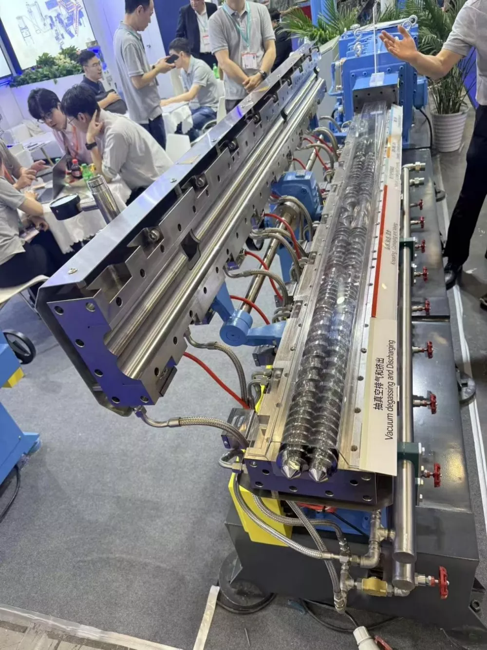 Met die oog op die besonderhede van die Sentraal-Asiatiese mark, het Nanhaiya ook sy pasgemaakte diensvermoë uitgelig. Van klein skroewe (Ø15mm) tot groot vate (Ø940mm), en van standaard-ekstruderingstoerusting tot gespesialiseerde skroefstelsels vir PE, hout-plastiek-komposiete en PVC, die maatskappy bied 'n volledige reeks dienste, van konsepontwerp tot volledige produksielyntoerusting, aangepas by klante se produksiebehoeftes. By die uitstalling het Nanhaiya voorlopige samewerkingsooreenkomste met drie plaaslike Oesbekiese plastiekvervaardigers bereik. Die twee partye sal in-diepte besprekings voer oor skroef- en vat-opgraderings vir hul produksietoerusting.