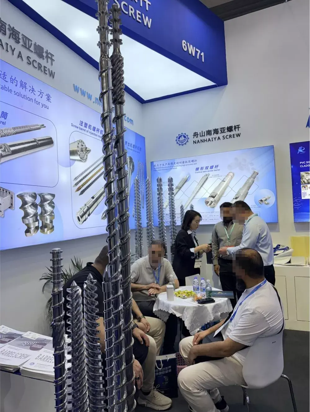 By die uitstalling het dieZhoushan Nanhaiyastalletjie was besig met besoekers. Sterprodukte wat by die uitstalling vertoon is, soos die dubbellegeringsskroef en -loop en die nitreer-skroef en -loop, het wydverspreide aandag getrek met prestasieparameters wat industriestandaarde ver oortref. Nanhaiya se produkte word almal van 38CrMoAl-legeringsstaal gemaak en word deur verskeie prosesse vervaardig, insluitend blus en tempering, karakterisering en presisiebewerking. Die vatafvoerpoort, 'n kwesbare gedeelte, het veral 'n innoverende, volsirkel-karbiedbespuiting, wat 'n interne hardheid van 62HRC behaal, 'n beduidende verbetering bo die bedryfsgemiddelde van 58HRC.